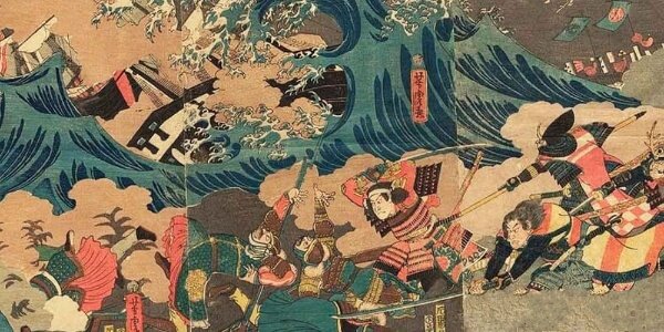 В 1274г монголы отправились завоёвывать Японию. 900 судов 40,000 человек на борту. Так или иначе, монголы вернулись обратно ни с чем. Убилай-хан в 1281г снова появился в бухте Хаката, с 4400 кораблями и 142,000 человек команды. Японский император сходил в храм, помолился и монголов разгромил намоленным тайфуном.