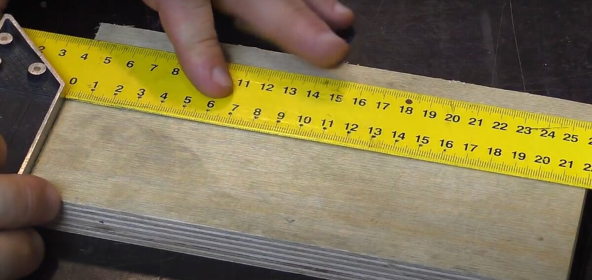Затем нам нужно сделать разметку на широкой детале. Делаем мы это при помощи тонкой заготовки( смотри на фото).