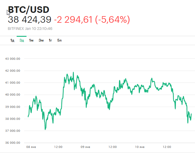 После своей, пока что, пиковой точки, биткойн снова стоит 38.000$.