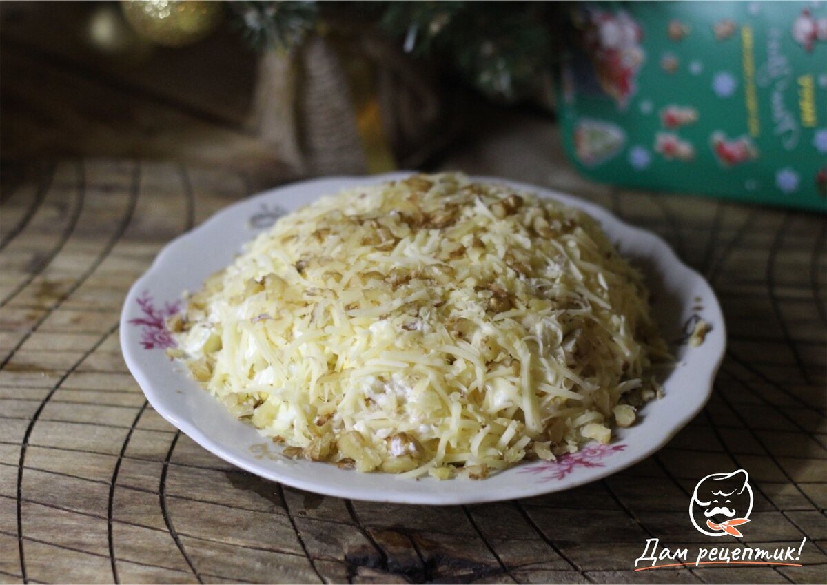 Добавить рубленые орехи. Дать салату пропитаться в холодильнике в течение получаса.