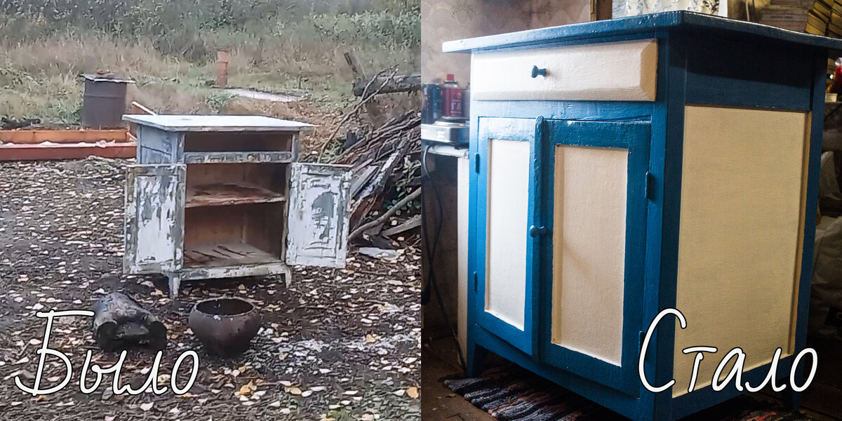 Мои постоянные читатели знают, что я люблю всякое старье )) Так же они уже видели, как мы спасли советское кресло с помойки. Так же они читали, как я сначала хотела сжечь, а потом пожалела старый деревянный стол, что был сделан в лохматых годах на Валдае и достался нам вместе с домиком при покупке. В общем, я рассудила так: хорошая мебель нынче на дороге не валяется; деревянный, а не из дсп, стол еще поди нынче найди; кроме того, мебелей в наши дали не навозишься - в крошечного паджерку-миника мало что влезает, а доставка недешева, так что я лучше этот заслуженный кухонный предмет в порядок привести попытаюсь, а сжечь - оно завсегда успеется. Учитывая срок просыхания краски, а так же наши редкие наезды во владения, спасение стола заняло какое-то солидное прямо время для такого небольшого предмета, но зато вышло симпатично ))