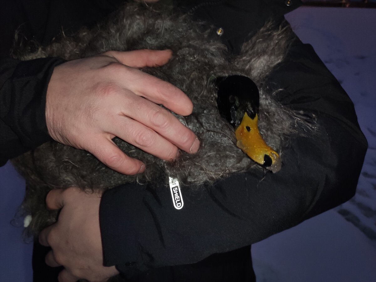 🦆 Около ворот шлюза, в 3 метрах от берега, спасатели обнаружили водоплавающую, скованную коркой льда - птица не могла пошевилиться.