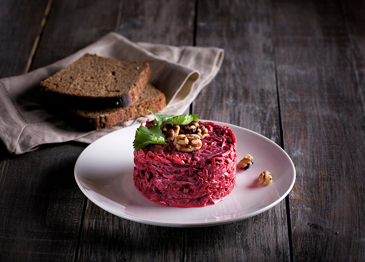 Альфа и омега русской кухни: «- А давайте возьмем соленую рыбу и корнеплод, почти полностью состоящий из чистого сахара, и ляпнем на одну тарелку? — Майонез не забудь!» Селедкой под шубой можно и стол украсить, и водочку закусить, и напугать до зеленых чертей и прихода Кондратия иностранного гостя, и выходит она, опять же, красиво. В общем, селедку под шубой давно пора сделать еще одним символом широкой и загадочной русской души наравне с медведями в ушанках и Пушкиным. И Овнами, кстати, потому что Овны — тоже наше всё: мы вообще подозреваем, что селедку под шубой именно Овен и изобрел, потому что только Овны могут сделать салат не из ничего даже, а из абсолютно несочетаемых продуктов. И натереть его на мелкой терочке, чтобы было уютнее падать в него лицом.
