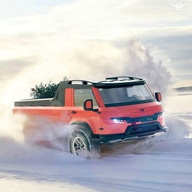 Ульяновский автозавод проиллюстрировал свое официальное новогоднее поздравление изображением футуристичного бескапотного грузовичка, который можно описать, как переиздание легендарного "головастика" УАЗа-452Д. Специально под праздничную тему грузовик окрашен в красный оттенок, а из его грузового отсека выглядывает ель.