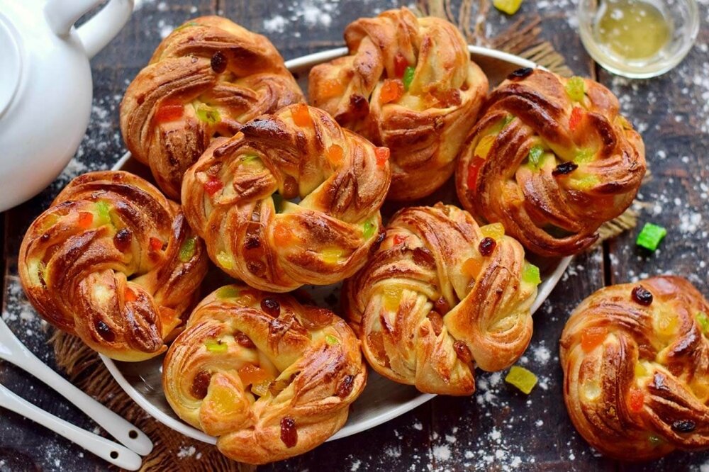 Готовим вкусные и красивые булочки с цукатами и изюмом. Тесто замешиваем на молоке и сухих дрожжах, процесс очень быстрый и простой. Булочки получаются воздушными, долгое время остаются мягкими, достаточно накрыть их полотенцем. Кислинка цукатов и изюма отменно дополняет сладкое тесто. Из данного количества продуктов получается 8 булочек.
