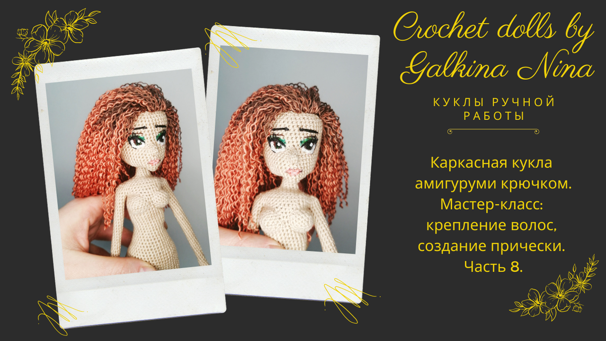 Каркасная кукла амигуруми крючком. Мастер-класс: крепление волос, создание прически. Часть 8.