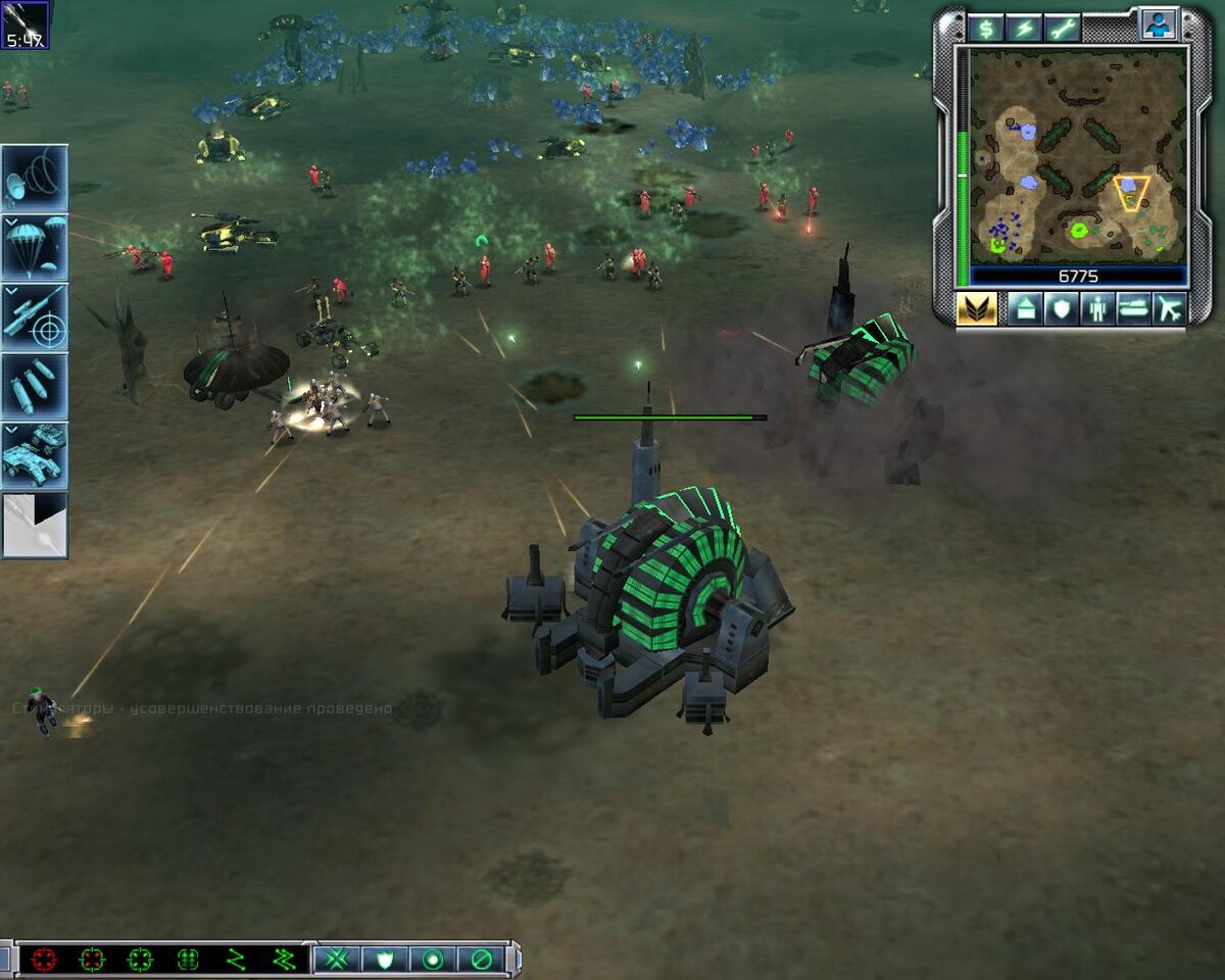 ГСБ комбайны могут стрелять по врагам. Так же, у каждой стороны есть свой собственный супер-юнит. Это может быть огромный танк, трехногий робот или непонятный здоровенный паук. Графика игры на высшем уровне. При максимальных параметрах, можно разглядеть трещины в построенных зданиях или мелкие детали одежды солдат. Битва становится гораздо интереснее, когда можешь наблюдать за происходящим вблизи. В целом, игра получилась достойной внимания публики. Я бы оценил ее на 8 из 10. Хочется сказать, что авторы на славу постарались, чтобы новинка достойно приняла титул серии. Я считаю, что им это удалось.