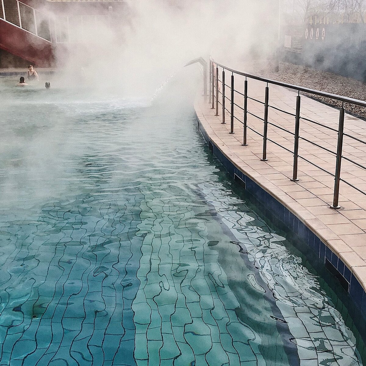 Далее по возрастаю ценника следует горячий источник «Сосновый бор». Он расположен недалеко от посёлка Винзили. На территории два бассейна. Один — крытый, второй — под открытым небом. Купалась в обоих, мне понравилось. После воды приятно выпить горячего чая из трав в кафе, которое прямо у бассейна.