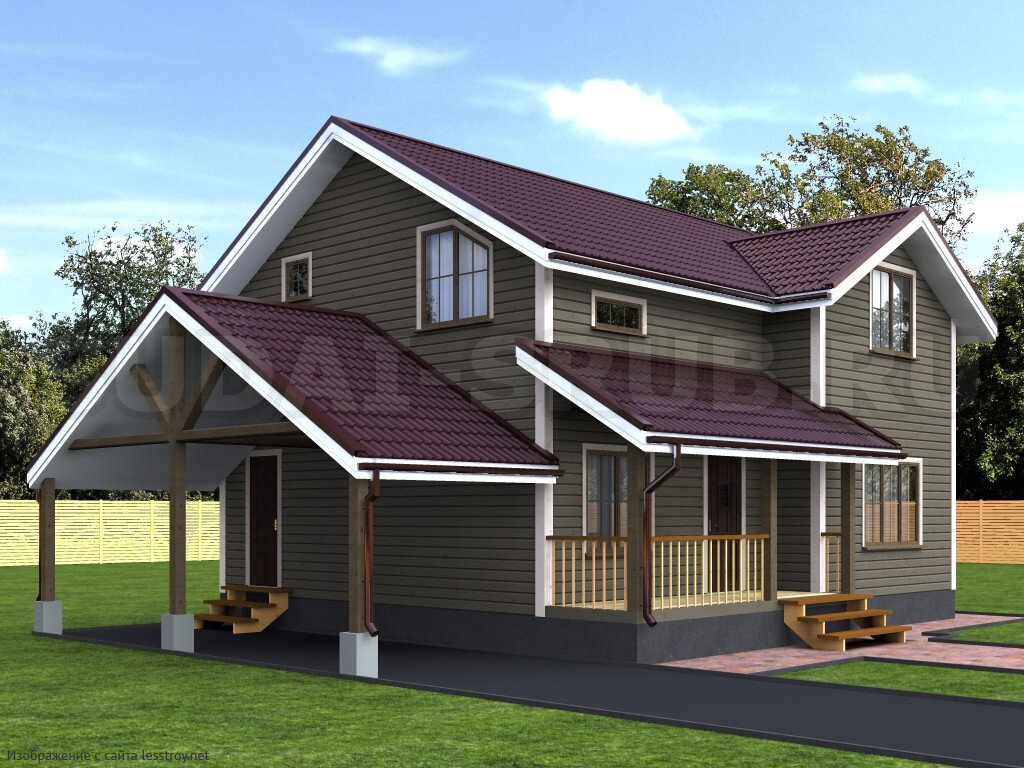 Если использовать обычный брус вместо профилированного, то цена будет от 991 000 руб, ленточный фундамент добавит к стоимости 318 000 руб, а свайно-винтовой 118 000 руб. Покрытие крыши металлочерепицей выйдет еще в