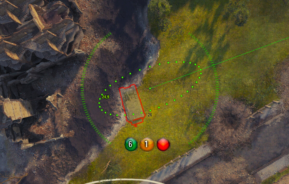 Примерный квадрат вычислили, теперь нужно поймать момент, когда она выстрелит. Выстрел арты всегда заметен, даже если она стоит в кустах! Вы увидите улетающий снаряд и еще полсекунды дым от него: