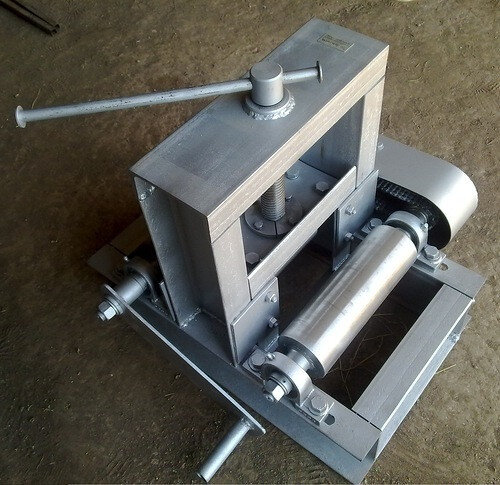 Другое немаловажное изменение это узелок ролика опоры из того же двенадцатого швеллера. На прошлой моделе опорный ролик опирался на полки швеллера и усилия создаваемые трубой, раздвигали подшипники, создавая цель, что приводило к вводу заготовки в другую плоскость. Теперь этот узел имеет боковые упоры, которые позволяют избежать перекоса опорного комплекта и потери геометрии сечения трубы. Шпилька теперь опирается на постель из половинки трехчетвертной трубы, поэтому зубцы резьбы не проминаются. Узел подшипника протяжного вала тоже упрощен. Теперь он сварен на основе серьги рессоры от газели. При этом стало гораздо удобнее снимать колечки. Вал остался прежним, сваренным из блока старых 204-х подшипников. Этот вал сочетает в себе токарную точную геометрию и великолепную прочность. На его долю выпали серьезные испытания, но он по-прежнему не имеет ни одной царапины. Трубогиб собирается быстро и просто.