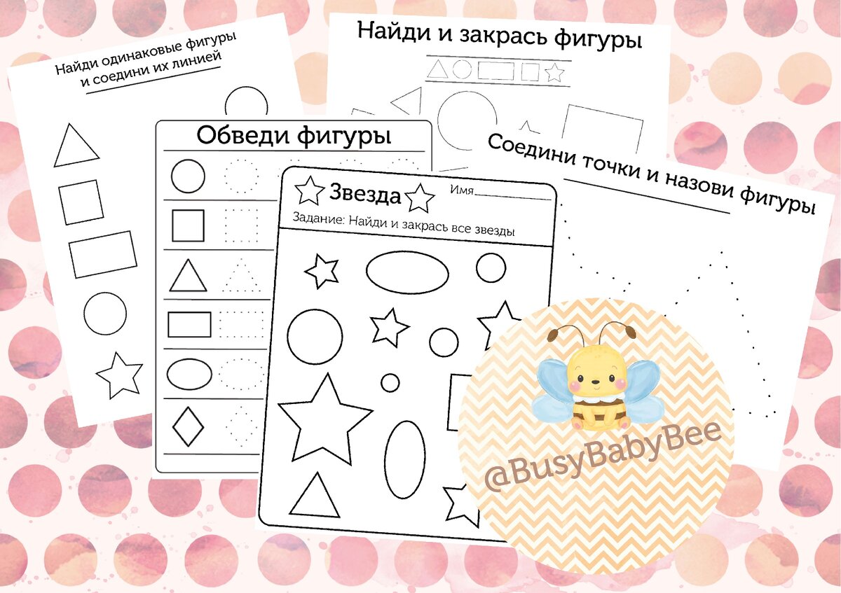 Просто позвольте вашему ребенку раскрашивать разные формы, обводить фигуры, искать и находить, сопоставлять две совпадающие формы или обводить точки.