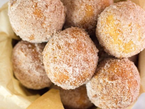 Когда он достаточно охладится, чтобы работать с одним пирогом за раз, слегка смажьте его растопленным сливочным маслом, а затем добавьте сахар, чтобы он покрыл все стороны. Повторите то же самое с оставшимися коржами