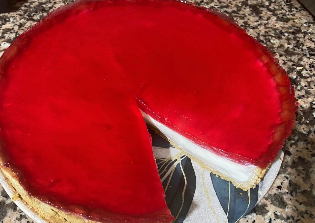 Когда наш корж готов, извлеките его из формы, чтобы в последующем не было сложностей с этим. Затем в форму, по краям, поместите пищевую плёнку, чтобы легко было вытаскивать наш десерт.