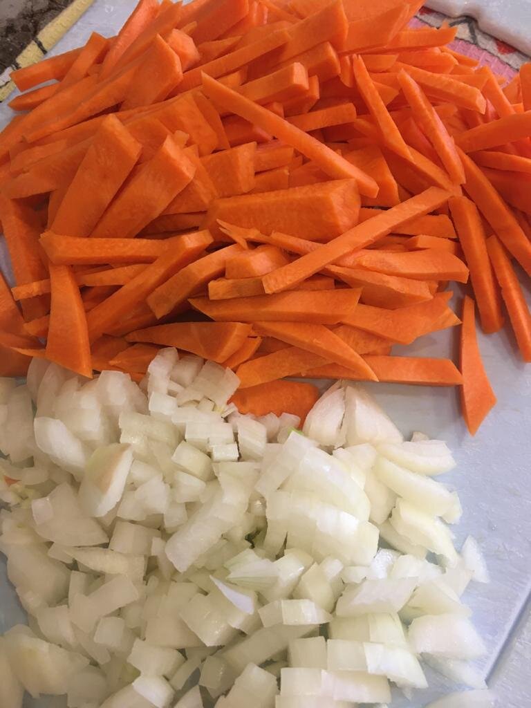 Мясо можно выбирать любое, но главное без костей и не жилистое. Сегодня у меня постная свинина (нежирный антрекот). Стоит взять побольше овощей ( лук, морковь, пастернак, можно добавить немного имбиря). Это придаст мясу сочность и вкус.