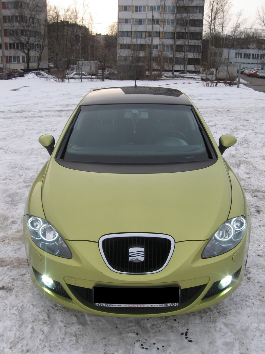 Сразу после покупки решил добавить машине ещё оригинальности. Предполагаю, что сейчас начнётся: "колхоз, убожество", но тогда был молодой, поэтому не судите строго). В результате, вместо габаритов были сделаны "ангельские глазки", в ПТФ установлен ксенон, по бортам сделал винилографию (с одной стороны SEAT, с другой LEON), поставил дефлекторы на окна и насадку на глушитель (как же без неё на "гонке-пушке")))