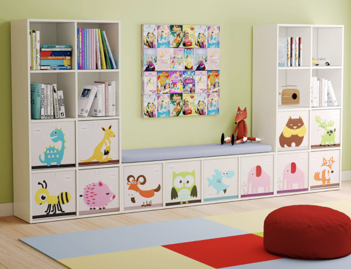 Стеллажи для детских комнат с контейнерами — это практичное решение, которое облегчает поддержание порядка. Их можно использовать для сортировки предметов и игрушек самых маленьких членов семьи. Полки детской комнаты обычно имеют форму мебели, состоящей из квадратных чашек — в каждом отделении есть пластиковый контейнер, картонный ящик или корзина, изготовленные из ткани.