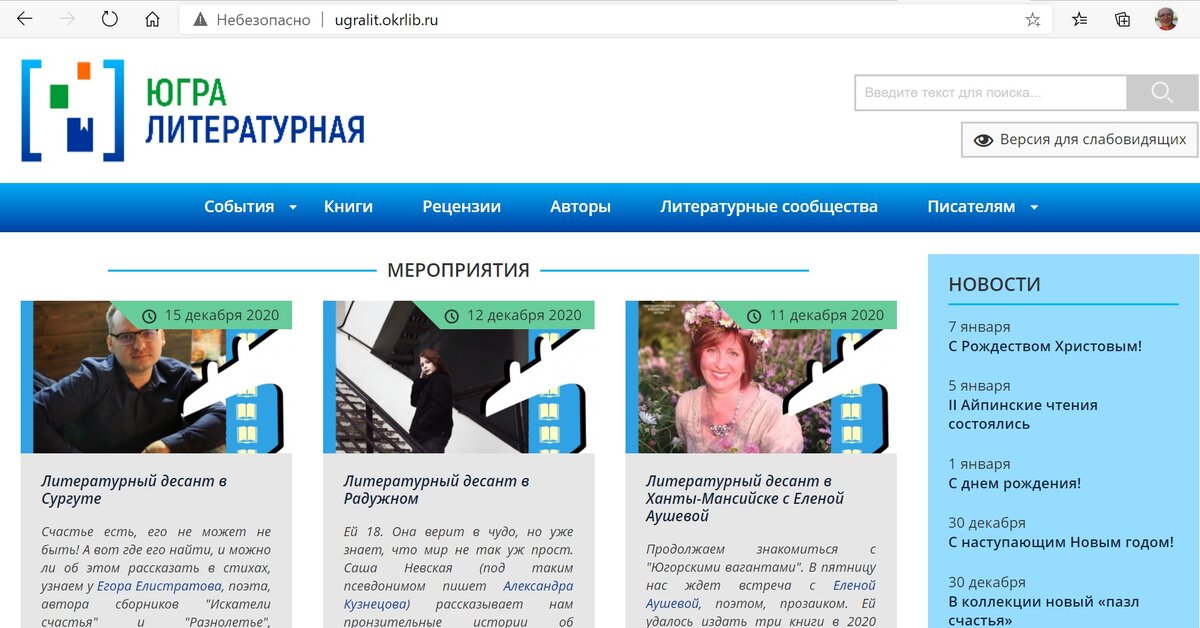 Получил письмо от Дарины Сергеевны Васильевой с портала "Югра литературная".