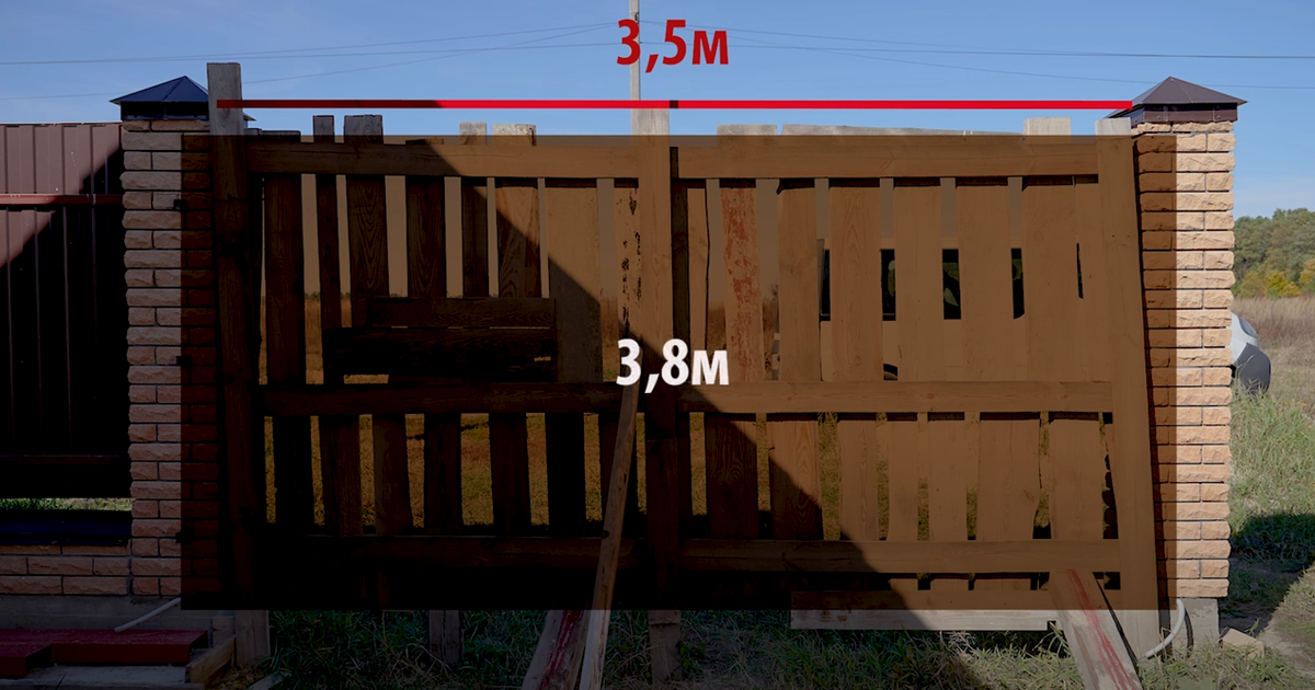 У нас есть проем шириной 3,5 метра, высотой 1,9 метра. Соответственно мы будем варить ворота шириной 3,8 метра, то есть на 30 сантиметров больше.
