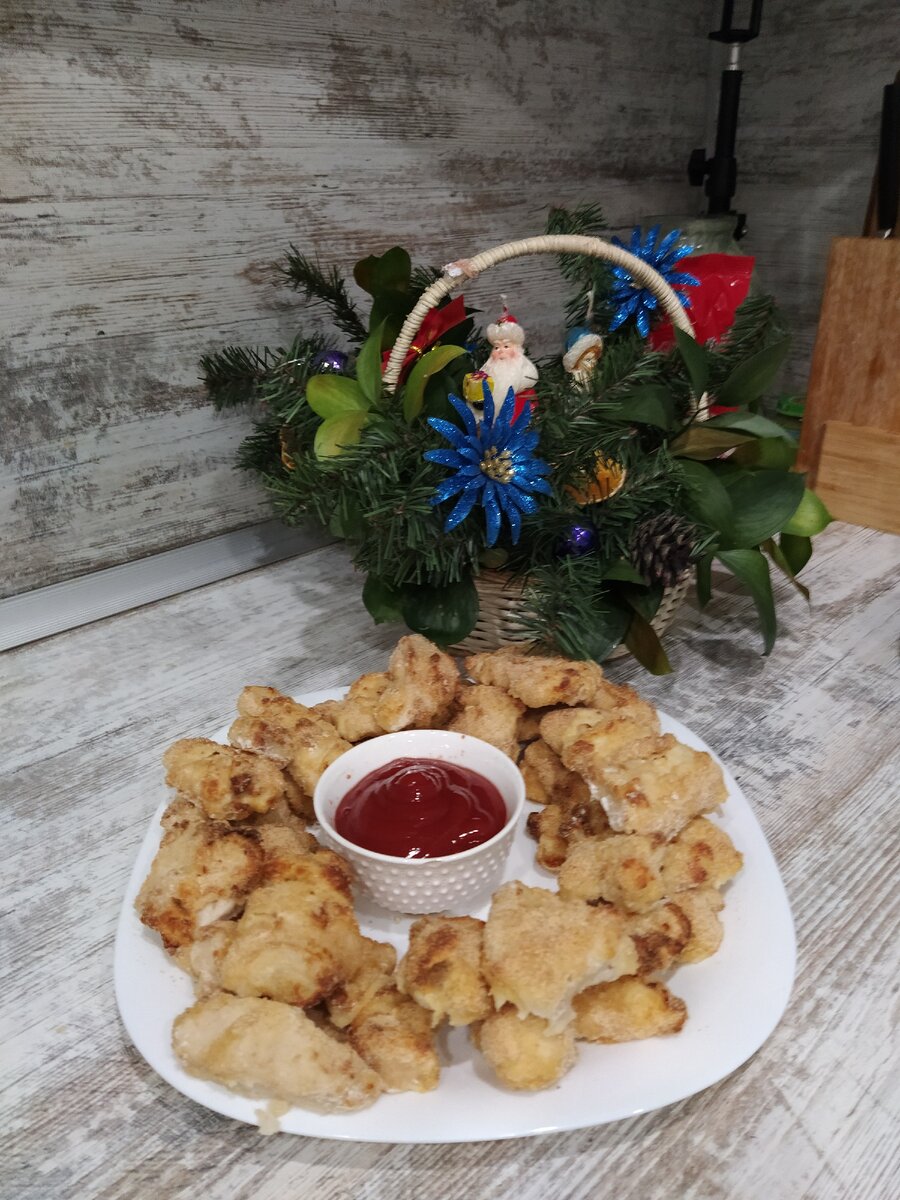 Грудка куриная 1 кг., 2 яйца,сухари панировачные, мука, соль по вкусу.
