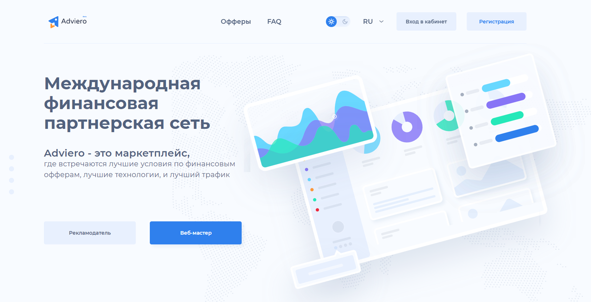 Партнерская сеть Adviero специализируется на финансовых офферах. В этой сетке есть всё необходимое для арбитража финансового трафика. Итак, что же получает вебмастер или арбитражная команда работая с Adviero? Давайте остановимся подробно на нескольких ключевых особенностях партнёрки.