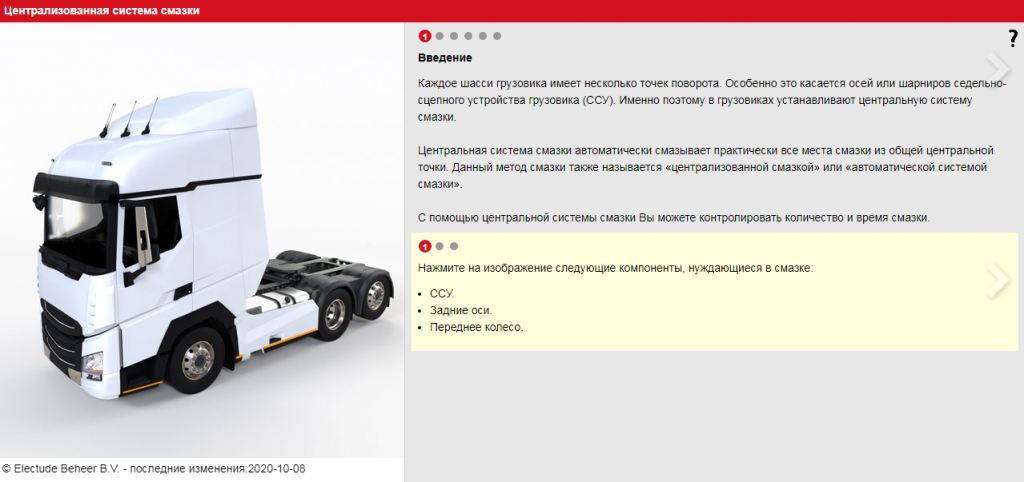Представляем учебное содержание модуля "Централизованная система смазки" из раздела "Грузовой транспорт" LCMS ELECTUDE. Cистема смазки обеспечивает подачу смазочного материала к узлам трения и его распределение.