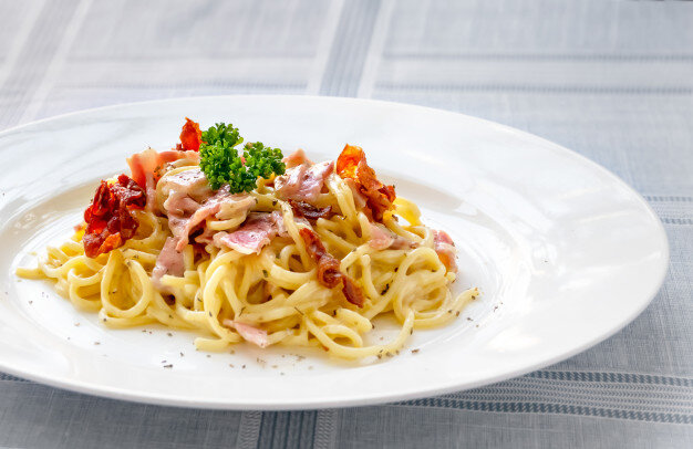 Паста с соусом карбонара - это принципиально простое и легкое блюдо, приготовленное путем покрытия пасты жирным сливочным соусом из яиц, сыра, свинины и черного перца. Задача состоит в том, чтобы объединить правильные ингредиенты для соуса с идеально шелковистой текстурой.