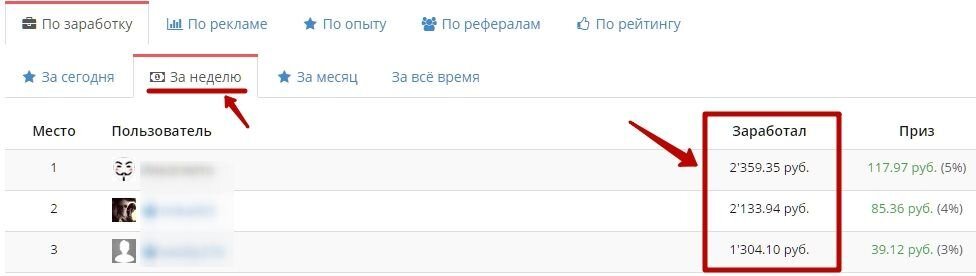 На картинке хорошо видно, что за неделю заработать 1 500 — 2 500 рублей вполне реально. А если работать сразу на нескольких проектах, то и сумму можно получить гораздо более значительную!