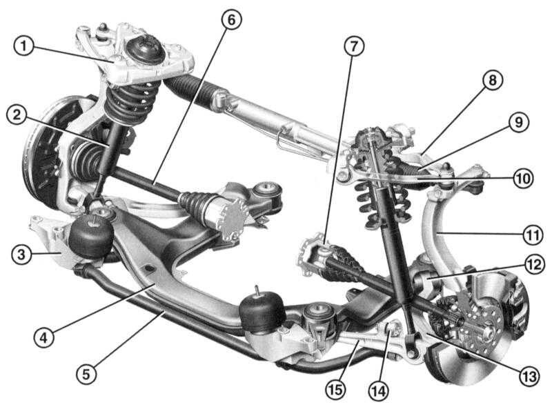 Детали из алюминия используются и в подвеске. Например, передние нижние поперечные рычаги. Подвеска имеют сложную многорычажную конструкцию, что для данного класса обычное дело. Однако, элементы шасси изнашиваются слишком быстро. Передние рычаги, как правило, приходится перебирать каждые 100 000 км (от 17 000 рублей за комплект рычагов). Задние рычаги выхаживают до 200 000 км. Передние ступичные подшипники могут зашуметь уже после 100-120 тыс. км.