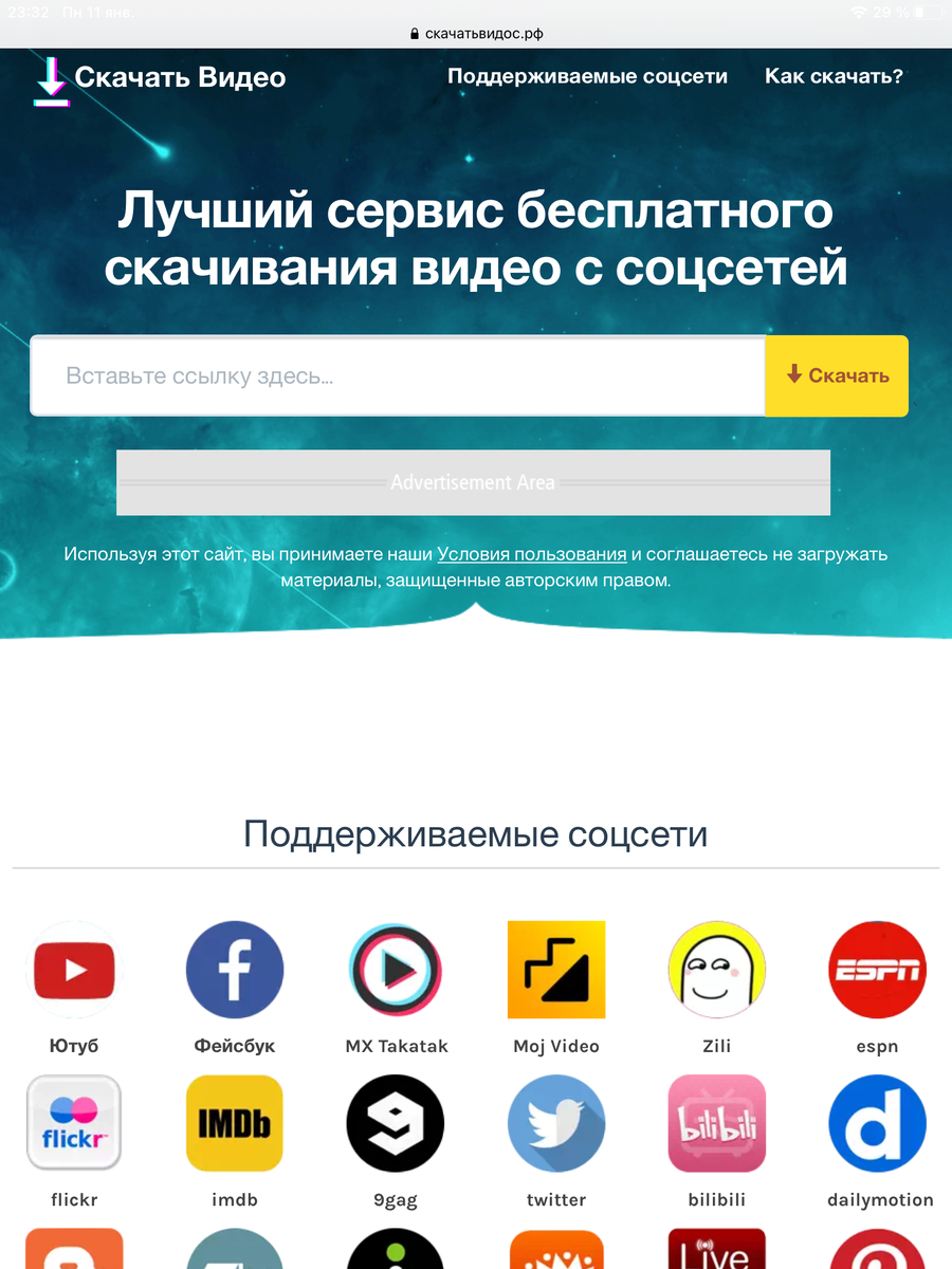 С помощью сайта скачатьвидос.рф