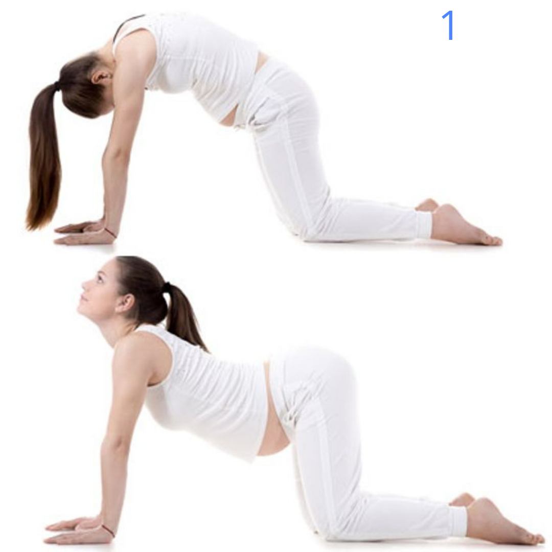 🔸️Растяжка кошки-коровы (Чакравакасана): растягивает позвоночник, помогает ребенку занять лучшее положение для родов.
