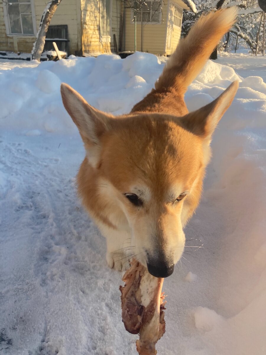 Раньше думала, что корги ближе к комнатной собачке, а у нас что-то не то выходит, мохнатая зверюга 20 кг, которая спокойно спит на снегу в двадцать градусов мороза.