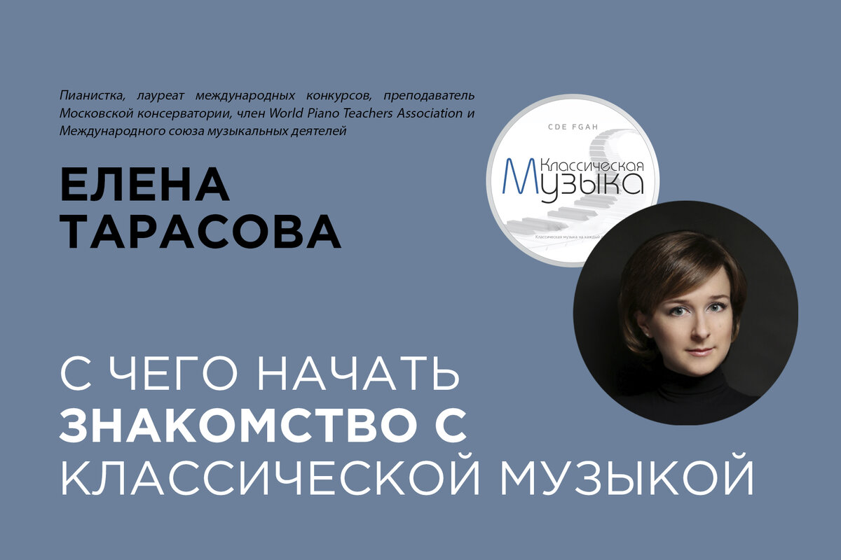 Новый год наступил! Самое время узнавать что-то новое. Классическая музыка для того и создана. Это огромное поле неразгаданных тайн в неисследованных мирах. Но многие этот жанр музыки обходят стороной из-за того, что не знают с какой стороны к нему подойти. Мы уже делали заметки на тему «как начать слушать», но в этот раз обратились к профессионалу, – преподавателю Московской консерватории, пианистке Елене Тарасовой, чтобы она помогла нам ответить на этот вечный вопрос:) Всего два шага вас отделяют от познания новых горизонтов. Публикуем рекомендации Елены Тарасовой: