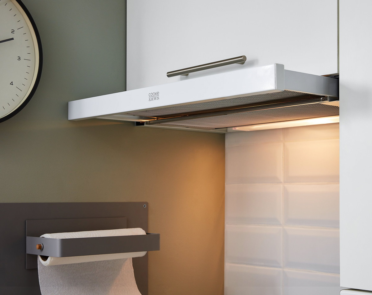 Встраиваемая в шкаф телескопическая вытяжка Faber Flexa Glass M6 W A60 FB EXP представляет собой компактное и удобное решение, благодаря которому на кухне будет всегда свежая атмосфера без посторонних запахов. Поскольку механическая часть прибора скрыта в мебельном шкафу, вытяжка почти незаметна в интерьере помещения. Обзору открыта лишь белая нижняя панель с фильтром и плафоны подсветки, а также торцовая пластина выдвижного блока с узкой металлической накладкой. Кстати, если в кухне преобладает техника черного цвета, то можно приобрести соответствующую цветовую модификацию прибора. Предельная пропускная способность воздуха данной модели составляет 450 м³/ч при максимальном уровне шума 61 дБ. Ползунковым переключателем, управляющим электромотором мощностью 125 Вт, можно регулировать 3 скорости вращения вентилятора, отвечающего за производительность очистки. А кнопка включения светодиодных ламп подсветки становится доступна при открывании выдвижной панели.