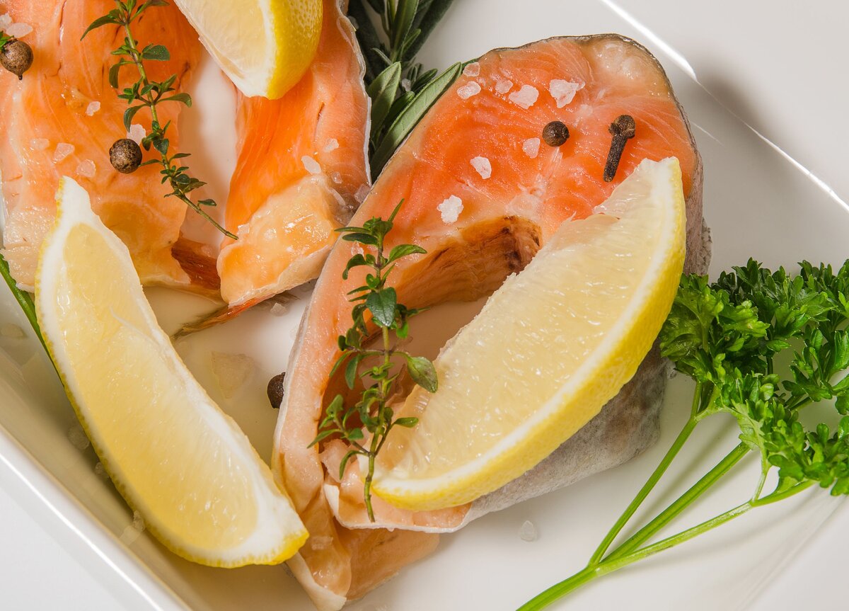 - Выложите готовые стейки на тарелку и при желании сразу же снимите чешую.