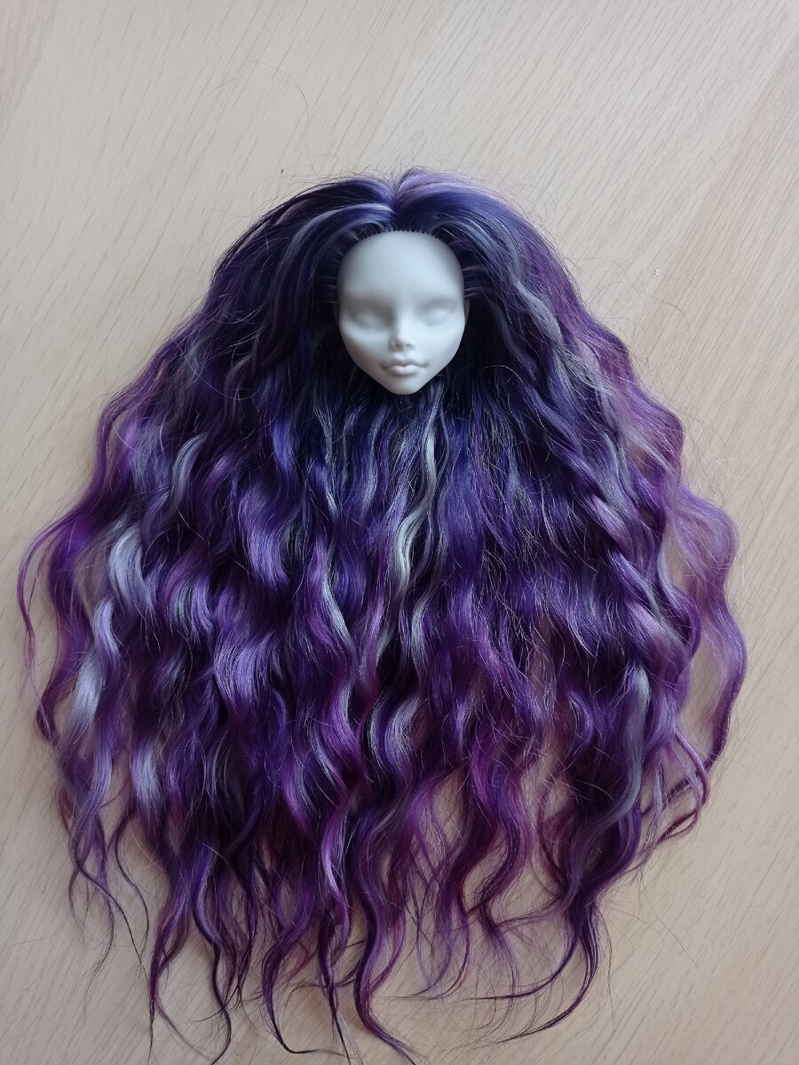 У куколки ещё не было лица, не было одежды. По словам Маши, она влюбилась в эти локона цвета ночного неба. Я делала королеву ночи. В итоге, она её купила сразу, ещё до рисовки. И, естественно, с этого момента она принимала активное участие в создании своего чуда.