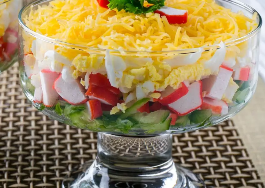 Обязательно приготовьте такой вкусный салат с крабовыми палочками, удивите ваших гостей за праздничным столом