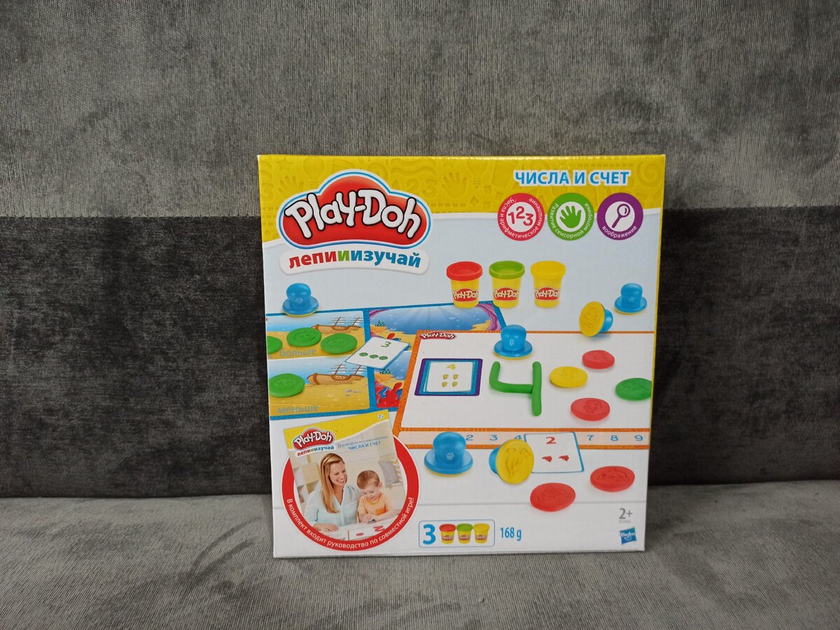Пластилин play doh - это прекрасный современный пластилин, безопасный, не липнет к рукам, очень мягкий, хорошо лепится и держит форму, продается в разном объеме, разные цвета, но есть одно но -он быстро сохнет, поэтому после игры нужно спрятать его в коробочку, в которой он продаётся. К этому пластилин производитель создал много прекрасных игровых наборов, один из них очень интересный, полезный и развивающий набор -"лепи и изучай", этих наборов несколько, есть изучающий цвета и формы, у нас изучающий счет и больше-меньше. В этом наборе восемь штук печаток с изображением морских жителей, несколько журнальных игровых полей, карточки счета с изображением тех же морских животных, что и на печатках и три баночки пластилина по 50 грамм. Этот набор я приобрела на сайте "Яндекс маркет" всего за 400 рублей. Набор отличный, подойдет на подарок. Пластилин плей до как всегда мягкий, хорошего качества, карточки очень плотные, по карточкам с помощью печаток и пластилина ребёнок изучает счет и понятие больше-меньше, игровые поля создадут игровую лёгкую атмосферу во время обучения, а печатки-это вообще главный атрибут, детям они очень нравятся, качество у них как и у всего набора превосходное, их можно использовать не только с пластилином, но и с красками. Единственный небольшой минус-это то, что самого пластилина не очень много, но его можно докупить отдельно в любом детском магазине или на сайте интернет магазинов таких как Озон, Вайлдберрис, Беру и тп. Набор очень хороший, рекомендую!