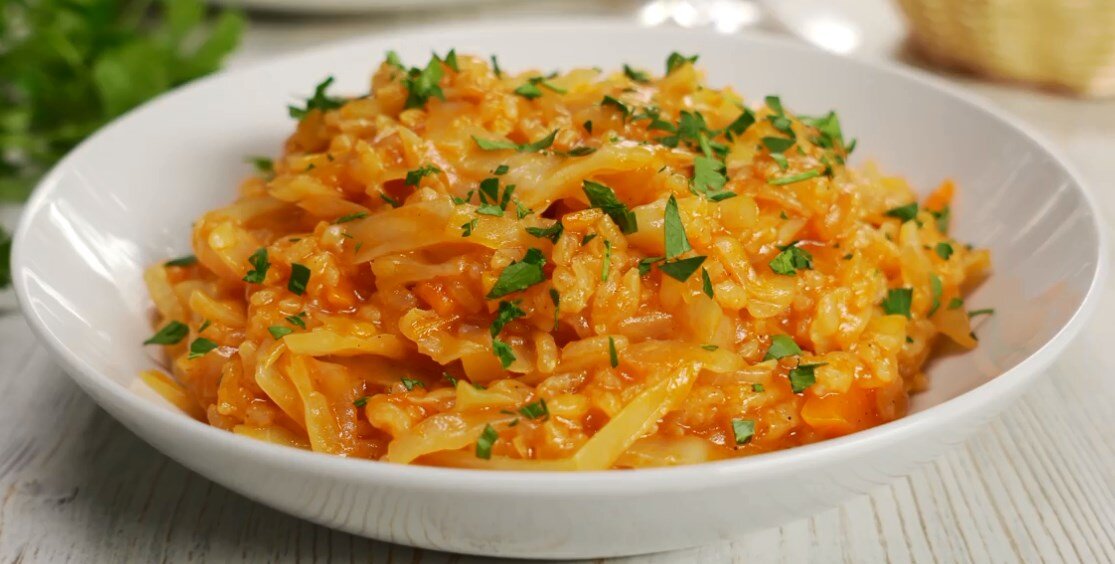 Добрый день друзья! Греки всегда умели готовить оригинальные блюда из самых простых продуктов. Сегодня для вас подробный рецепт Лаханоризо, вкусное и сытное блюдо на обед или ужин. Готовится очень просто, справится любой. Для приготовления понадобятся: - капуста белокочанная - 900 гр.; - лук репчатый - 200 гр.; - морковь - 120 гр.; - рис - 200 гр.; - помидоры протертые - 250 гр.; - сахар - 1 ст.л.; - вода - 700 мл.; - лимонный сок - 2 ст.л.; - оливковое масло - 80 мл.; - перец чёрный молотый - 1⁄2 ч.л.; -соль - 1 ч.л.; - петрушка свежая - 10 гр. Хорошо промываем рис, убираем в сторону. Нарезаем кочан капусты, чтобы получилась соломка сантиметров по 5. Лук режем мелкими полукольцами. В кастрюлю наливаем оливковое масло, и нагрев его отправляем обжариваться лук. Обжариваем около 4 минут на среднем огне. Морковь режем мелкой соломкой по 1,5-2 см. Кладём её в кастрюлю, и всё перемешиваем. Нарезанную капусту отправляем к луку с морковью, всё хорошо перемешиваем. Тушим 5 минут на среднем о