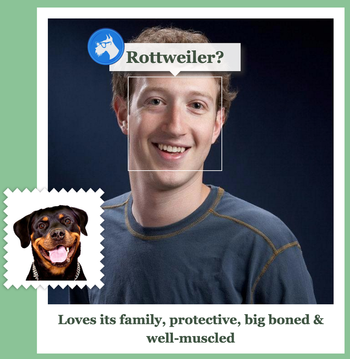 В феврале 2016 года в рамках экспериментальных «гаражных» проектов Microsoft выпустила сервис What Dog, умеющий распознавать по фотографиям породы собак. Но, увы, не только редкие породы оказались камнем преткновения для сервиса — порой он определял кошек как собак! Как это работает: в приложении есть каталог пород собак, и при распознавании снимка выдается оценка соответствия. Ради развлечения туда добавили режим, позволяющий определять «породу» людей. Так начался новый «собачий бум». Создатель Facebook Марк Цукерберг превратился в ротвейлера, а основатель SpaceX — в золотистого ретривера.
