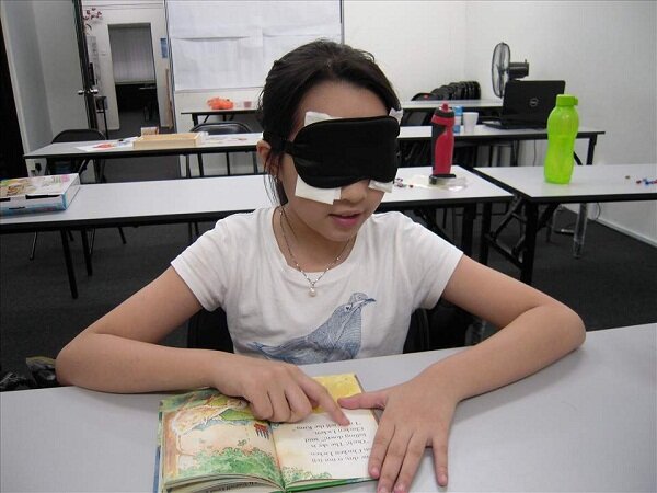 Читать в черных повязках за секунды: китайские дети тренируют «третий глаз»
