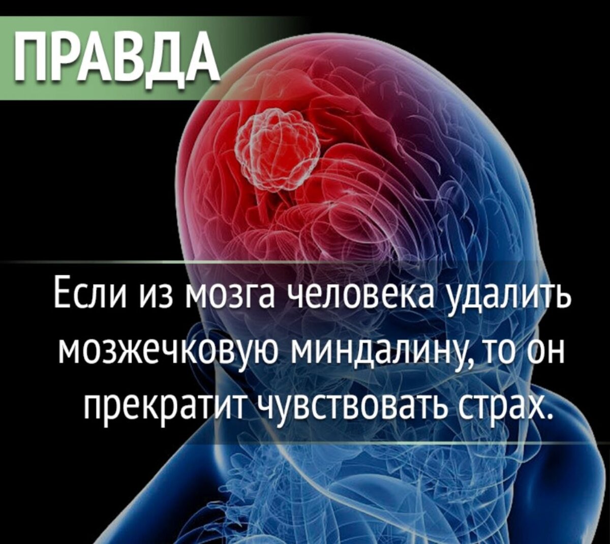 Правда! Если из мозга человека удалить мозжечковую миндалину, то он прекратит чувствовать страх.