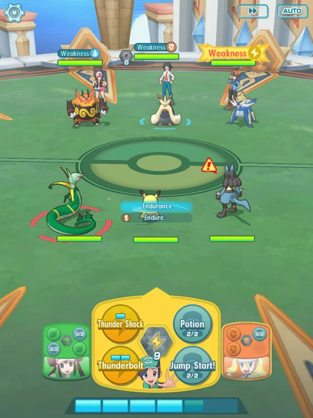 Так как это коперативный бой (co-op режим), то конечно лучше всего его проходить с друзьями, так вы сможете выбрать более подходящий состав команд, идеально было бы Но пройти без друзей тоже возможно, вот с NPC, уже гораздо сложнее Стратегия В первую очередь фокусировать надо именно Emboar, в идеале он не должен дожить до второго применения Rock Slide Смысла бить первым Стаутленда нет, до первого применения Sync Move, он вообще не производит атак, только баффает союзников. После Emboar, следует переключится на Samurott, как вариант спамить Райчевскими discharge. Samurott должен быть выбитым как можно быстрее оставляя Стаутленда на последок Перед Sync Move босса, разумнее переключится на Роксану, так что бы ваши атакующие покемоны выжили, после переключится на Райчу или Фералигатра и выиграть бой. До второго Sync Move босс не должен дожить