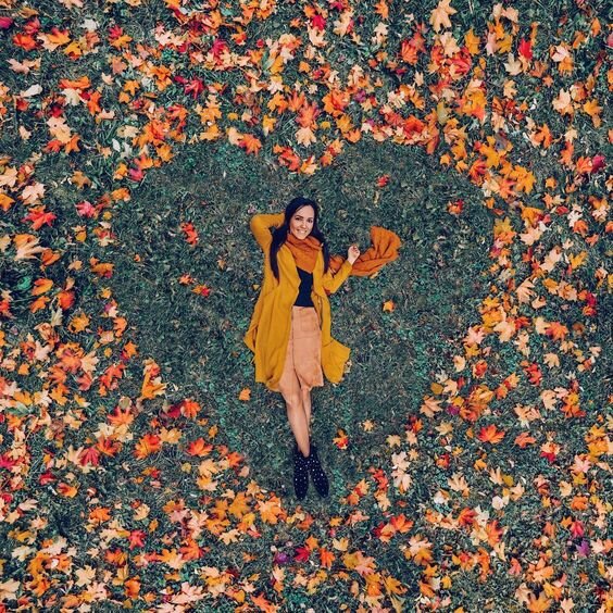 Если вы любите золотую, красивую Осень, то самое время сделать несколько красивых снимков в объятиях природы и листвы. Секрет красивой фотографии это искренние эмоции, широкая улыбка и удовольствие от того, что вы делаете и какие красивые фото получаются по итогу. Для живого, удачного снимка нужно подобрать интересный сюжет, постановку кадра и максимально отразить живые, настоящие ваши эмоции ( радость, веселье, задумчивость, романтизм, любовь, спокойствие и т.д.). Как декорацию используйте листья, деревья, ягоды. Отличный вариант - большое сердце, вокруг листва и в центре вы с красивой, яркой улыбкой и счастьем в глазах. Одежду лучше выбирать в осенних тоннах, но с яркими деталями, чтобы вы выделялись на фоне листьев и не сливались с травой. Отличная идея для фото зонт из осенней листвы. Нужно учесть : 1) ваш образ, одежда должна выделяться на фоне листьев; 2) обязательно используйте детали, которые будут отвлекать внимание от желтого цвета ( белый рюкзак, светлая одежда, волосы); 3)
