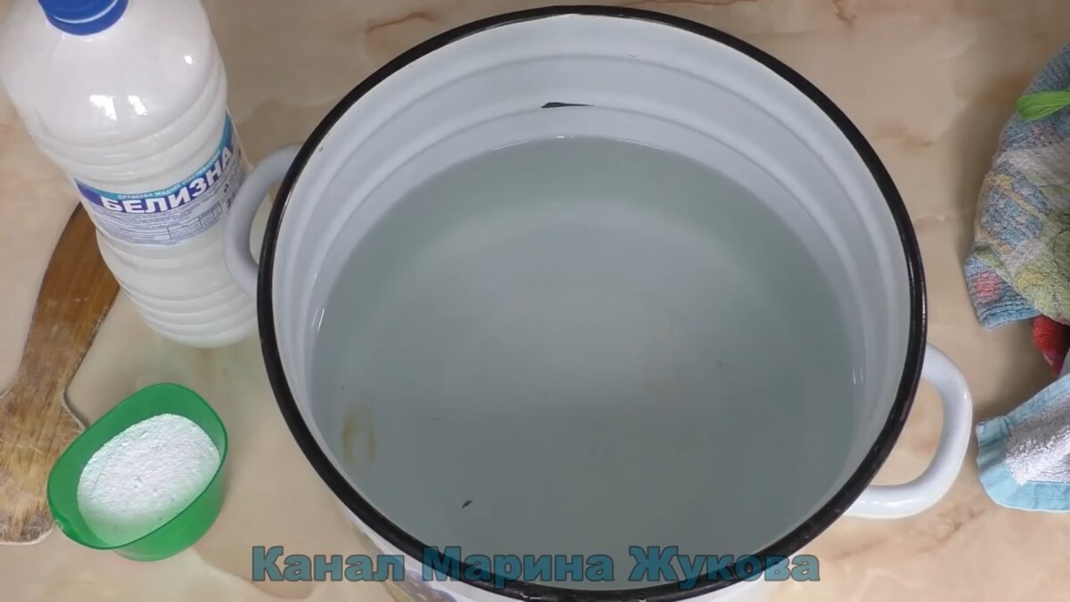 Друзья, всем привет! Вы на канале "Марина Жукова". Я очень рада вас приветствовать! И, сегодня, в своей рубрики "Совет в копилку" я хочу вам порекомендовать способ, с помощью которого можно отстирать кухонные грязные полотенца. Cделать это можно очень бюджетно и эффективно. Берем кастрюлю, наливаем в нее горячую воду, температура воды 60 градусов. В эту воду опускаем горсть порошка абсолютно любого и добавляем 50 мл Белизны. Всё хорошо перемешиваем. И в этот раствор упускаем сухие полотенца и прихватки. Оставляем белье в растворе на 30-40 минут. Через 30 минут белье необходимо хорошенько прополоскать. Можно сделать это в стиральной машине, можно сделать вручную. Если будете полоскать вручную, то полоскать нужно не менее 3 раз. Нужно хорошо белье очистить от порошка и от белизны. Все полотенца у меня были цветные, но ничего не окрасилась, ничего не полиняло. Наоборот, цвет полотенец стал намного ярче. Белая ткань стала белея. Смотрите, какой тёмной стала вода. Всё масло, весь жир,