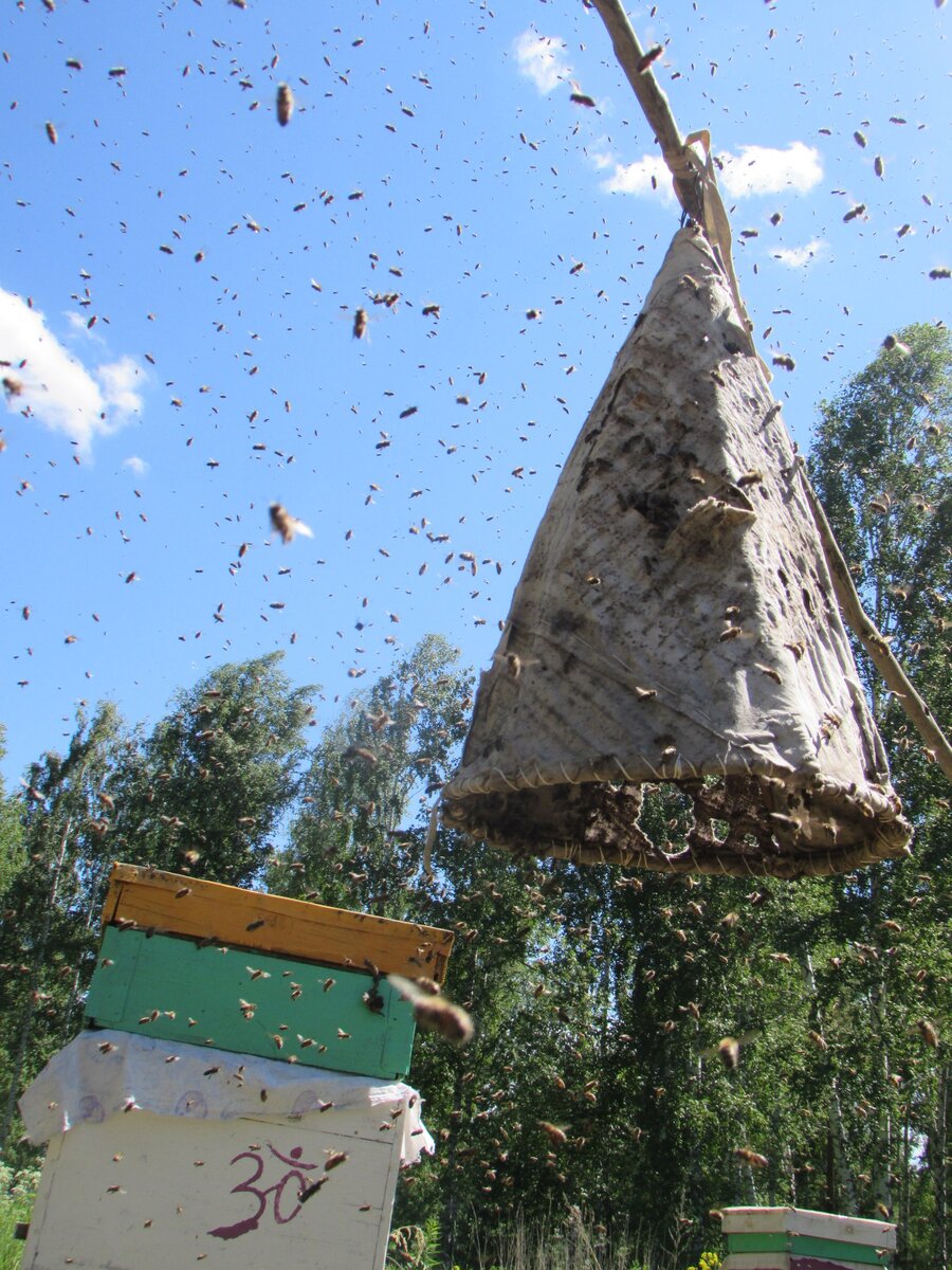 Рой - естественный способ деления пчелосемьи. Или как я называю это явление "косяк пчеловода". Сегодня только фото.