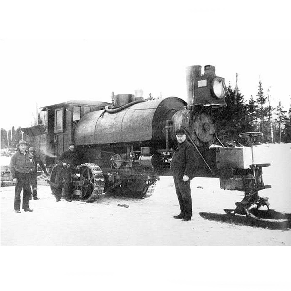По мнению авторов книги «Машинная тяга саней» самыми первыми серийными машинами для движения по снежной дороге, имевшие формальные признаки снегохода (гусеничный движитель, маневрирование за счет поворота лыж и тепловой двигатель) были паровые трелёвщики Lombard. Строились Lombard в американском штате Мэн в городе Ватервиль с 1900 по 1917 гг. Общая масса этих первоснегоходов была порядка 20 тонн, и управлялись махины командой из четырёх человек: кочегар и машинист - отвечали за работу котла, движителя; рулевой - сидел впереди и управлял ллыжам; инженер - координировал всю работу команды и отвечал за ремонт. Первые «самоходные Ломбарды» топились древесиной и перемещались по специальным ледяным дорогам шириной 2,5-4,3 метра со скоростью около 6 км/ч. Они буксировали до десятка саней, заменяя работу приблизительно 50 лошадей.
