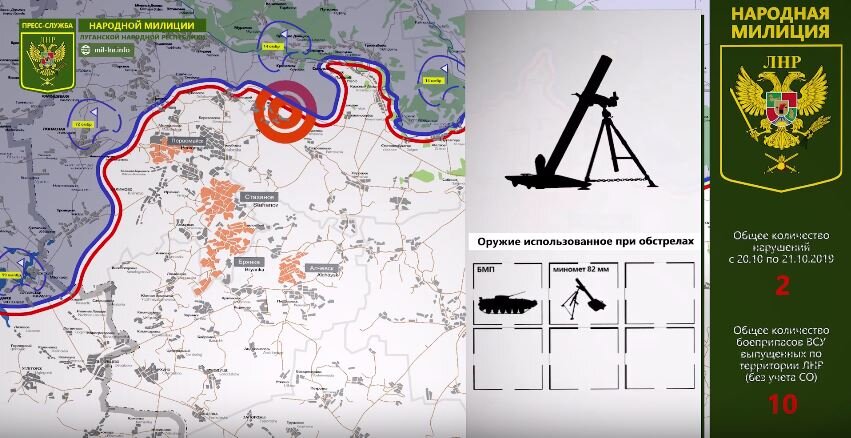 21 октября 2019 Обстановка на линии соприкосновения за сутки | Карта обстрелов