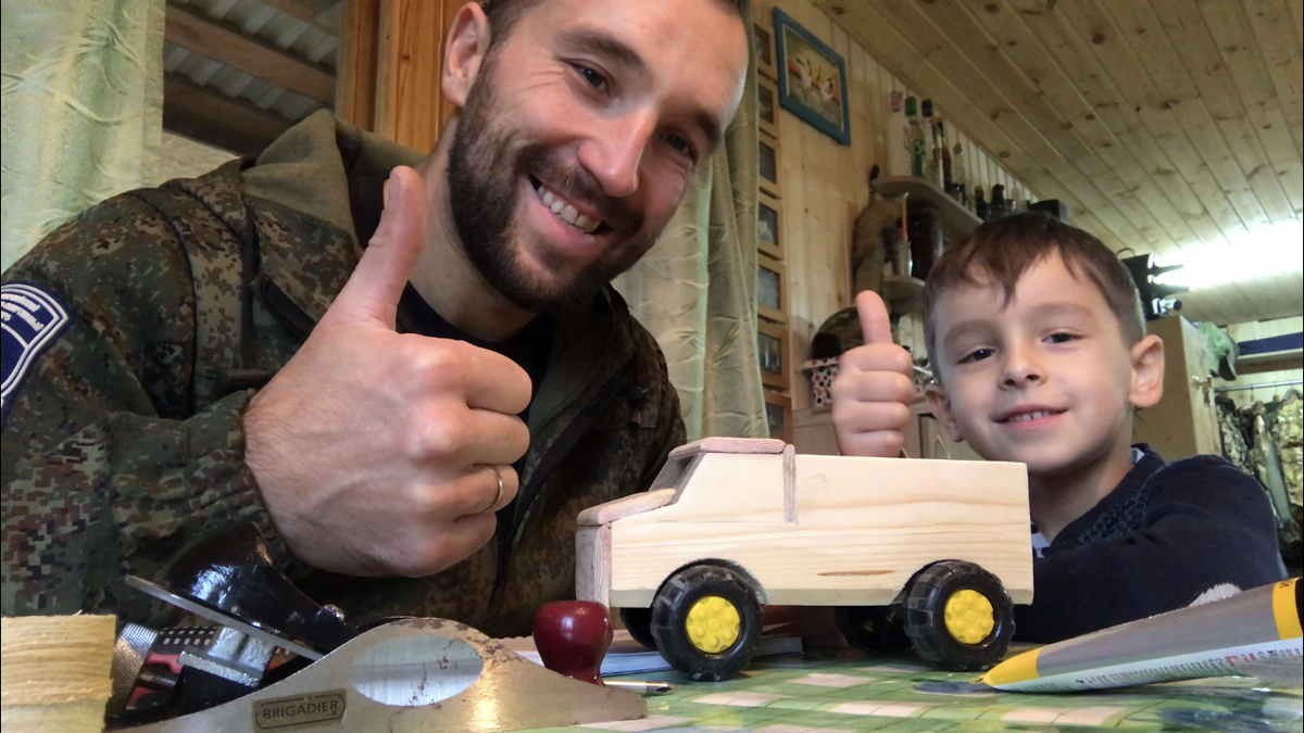Уже очень давно мы с сыном хотели сделать машинку из дерева. Мой восторженный сын задавался вопросом: «Сами?!?» И вот мы наконец приступили к воплощению идеи! Для начала, я предложил ему её нарисовать. Мы нарисовали наше авто в блокноте и по ходу изготовления всегда сравнивали. После согласованного рисунка пошли искать материал. Нашли: После поиска материала определились с инструментом: Работа пошла : И начали крепить части друг с другом. Для этого понадобилось: В пазы для скрытного крепления нанесли клей, после чего склеили днище с двумя заготовками боковых частей. Для жесткости конструкции вставили в пазы перегородку, так же на клей. После чего просверлили отверстия для саморезов и закрепили конструкцию. Из полученных «кружочков» от высверливания колесных арок, сделали полукруглые арки. От найденной старой сломанной машинки изъяли две пары колёс. Пришлось повыдумывать как же закрепить колёса. Павел выдал идею : «Давай прибьём гвоздями, но не до конца, и они будут крутится!» Я