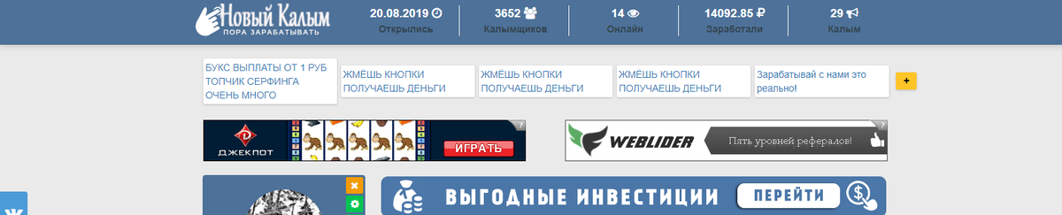 Привет дорогие друзья! Сейчас я покажу сайт, на котором можно реально заработать деньги без вложений, итак, вот он сайт: ссылочка на официальный ---https://kalym.info/i/3652 Не попадайтесь на уловки мошенников,переходить только на официальные сайты! Сразу, честно скажу сайт простенький и молодой. Мягко говоря - не очень, но он рабочий, на нем можно заработать, можно выводить свои заработанные деньги. Регистрация в один клик, нужно нажать лишь регистрация или вход, на это в принципе одна ссылка, далее через ВК страницу, разрешаем доступ и так попадаем сразу на страничку где нам предлагают заработать нажимаем на вот колымить))) такое слово необычное, но какое есть. Итак задание к примеру, нам нужно просто просмотреть сайт, занимает буквально несколько секунд и нужно ввести captcha к примеру будет число 66, далее нажимаете на число 66, всё, вы получите вашу небольшую денежку и так можно несколько раз подряд. Кликать на сайт и закрывать этот сайт, тыкать на следующий, калымить сл